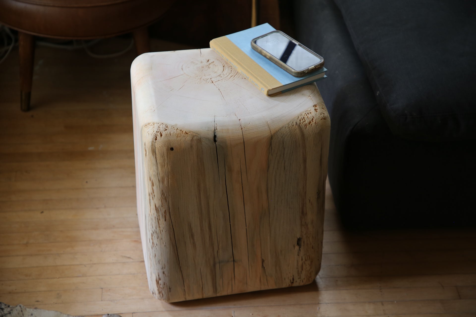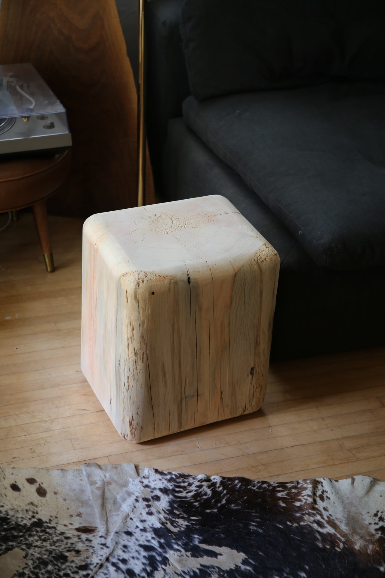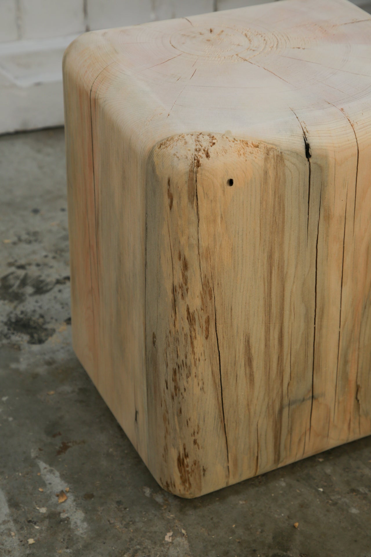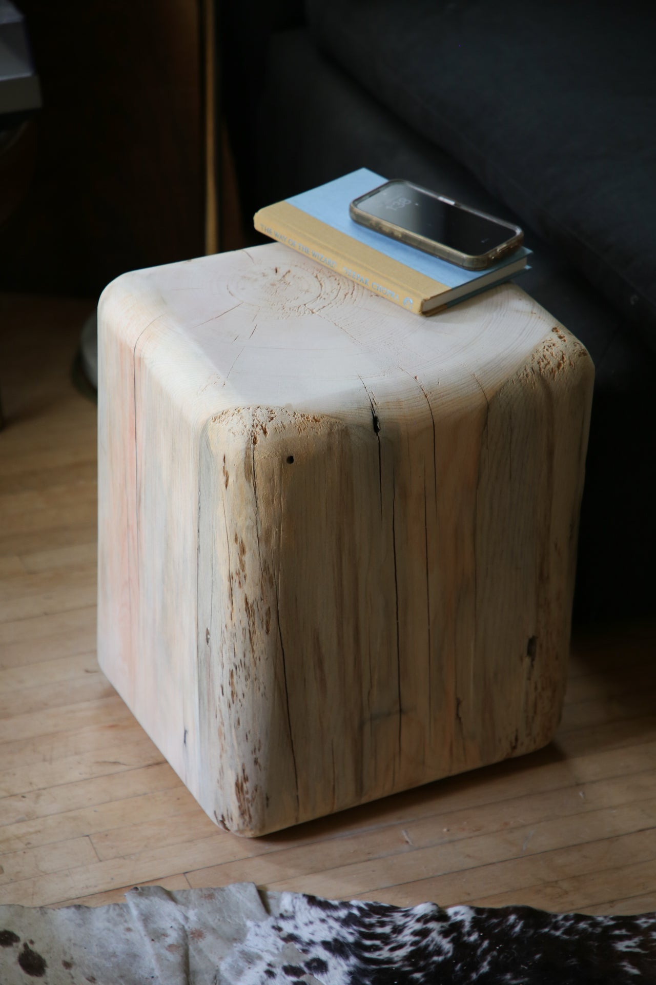 This rustic timber accent table makes a simple yet bold statement. Use for a stool or side table. Rounded edges creates a soft look. Perfect for a functional art piece. Goes well with eclectic or minimalistic décor. Chunky yet refined, subtle yet bold. Live edge, grain pattern and coloration will vary slightly as each piece is unique.